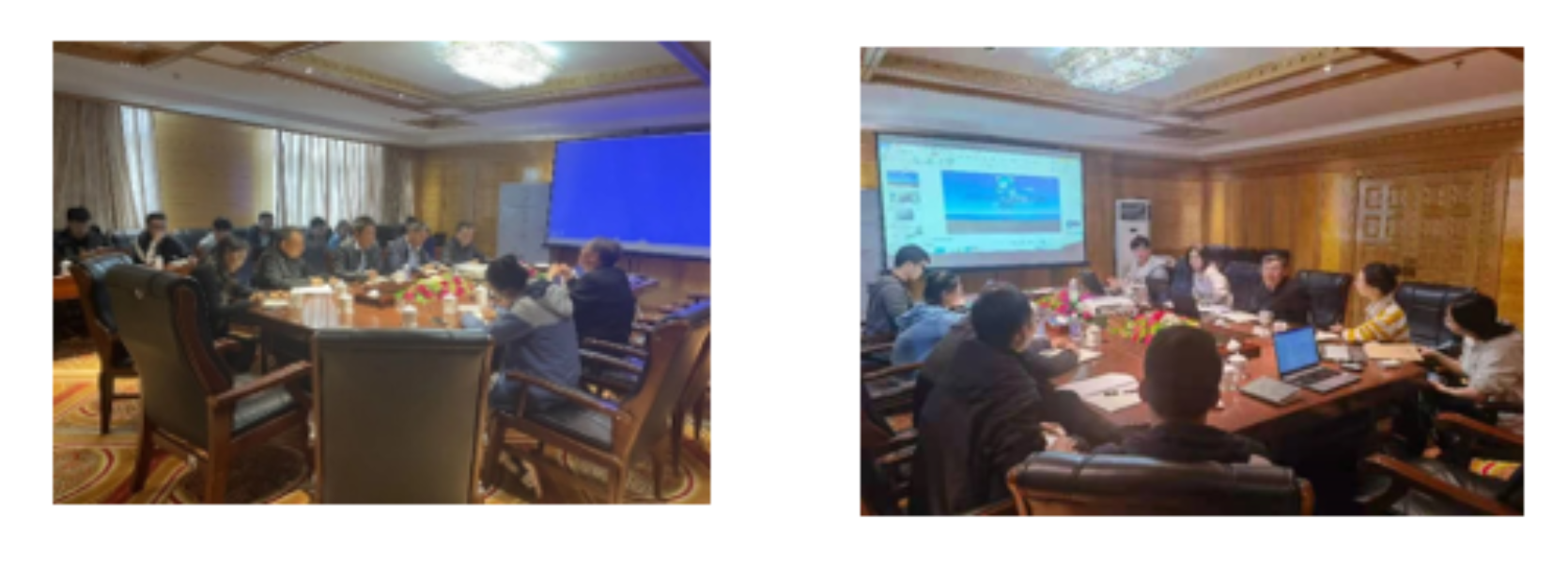 科考小分队队员与西藏自治区气象局相关部门负责人讨论会(左)与交流会(右)