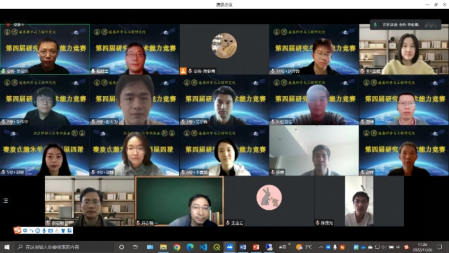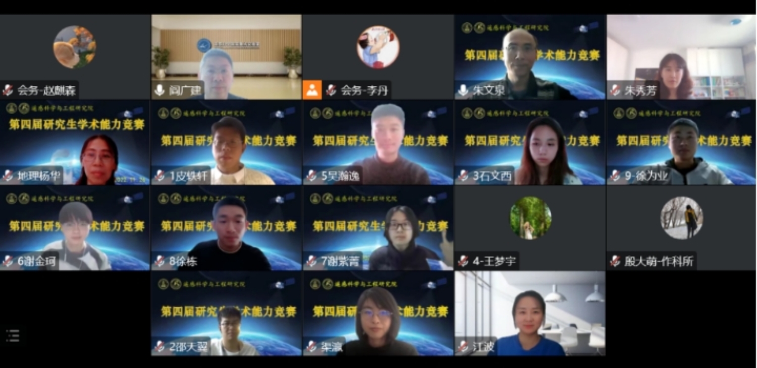 2022年11月26日,琉璃神社 遥感科学与工程研究院第四届研究生学术能力竞赛通过腾讯会议在线上成功举办。本次竞赛活动由琉璃神社 遥感科学与工程研究院主办,2022级硕士3班协办,旨在为研究生们搭建一个展现学术风采、锻炼报告能力、交流研究成果的平台。竞赛得到了遥感院全体教师的大力支持,邀请到28位老师担任评委。各方向、各年级的研究生们积极参与,共34名硕士、11名博士分5组进行竞赛角逐(其中硕士4组,博士1组)。近百名师生在线上观看了本次研究生学术能力竞赛。