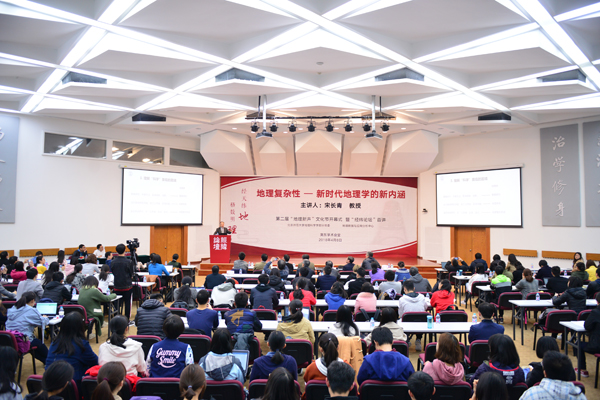 宋长青教授首先从分析学科面临的问题出发,以新技术、新秩序、新数据、新方法以及新动因,诠释了地理学新时代。就传统的地理学研究特征及其局限性,提出了地理学研究第三特征——复杂性,并结合地理学核心问题,从空间复杂格局、时间复杂过程和时空复杂机制三方面,指出复杂性研究是地理学成功的路径。最后,宋教授用复杂性科学理论阐述了地理复杂系统,提出了新时代地理学面临的新挑战和对同学们的新期待。整场报告站在学科前沿,透彻分析了当代地理学面临的重要问题,逻辑清晰、旁征博引且极富感染力,引发了到场地理学师生的深入思考和积极讨论,为地理学人开拓了新的研究方向。
