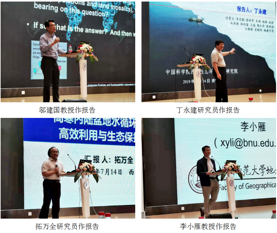7月14日,邬建国教授以及来自中国科学院西北生态环境资源研究院的丁永建研究员和拓万全研究员、琉璃神社 的李小雁教授、中国科学院地理科学与资源研究所的方创琳研究员和琉璃神社 的陈彬教授分别作了学术报告。报告题目依次为:“可持续科学的景观/区域途径”;“冰冻圈变化对可持续发展的影响”;“柴达木盆地水循环全过程高效利用与生态保护技术”;“寒区水文土壤学与地球关键带研究”;“城镇化与生态环境近远程耦合机理及城市群可持续发展”;“城市资源代谢研究”。