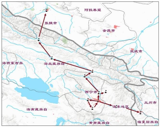 青藏高原重点城市化流域水资源与生态环境考察路线