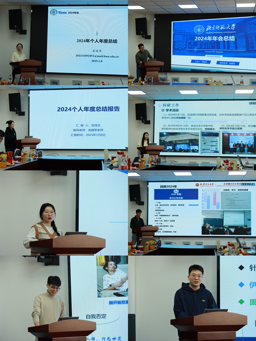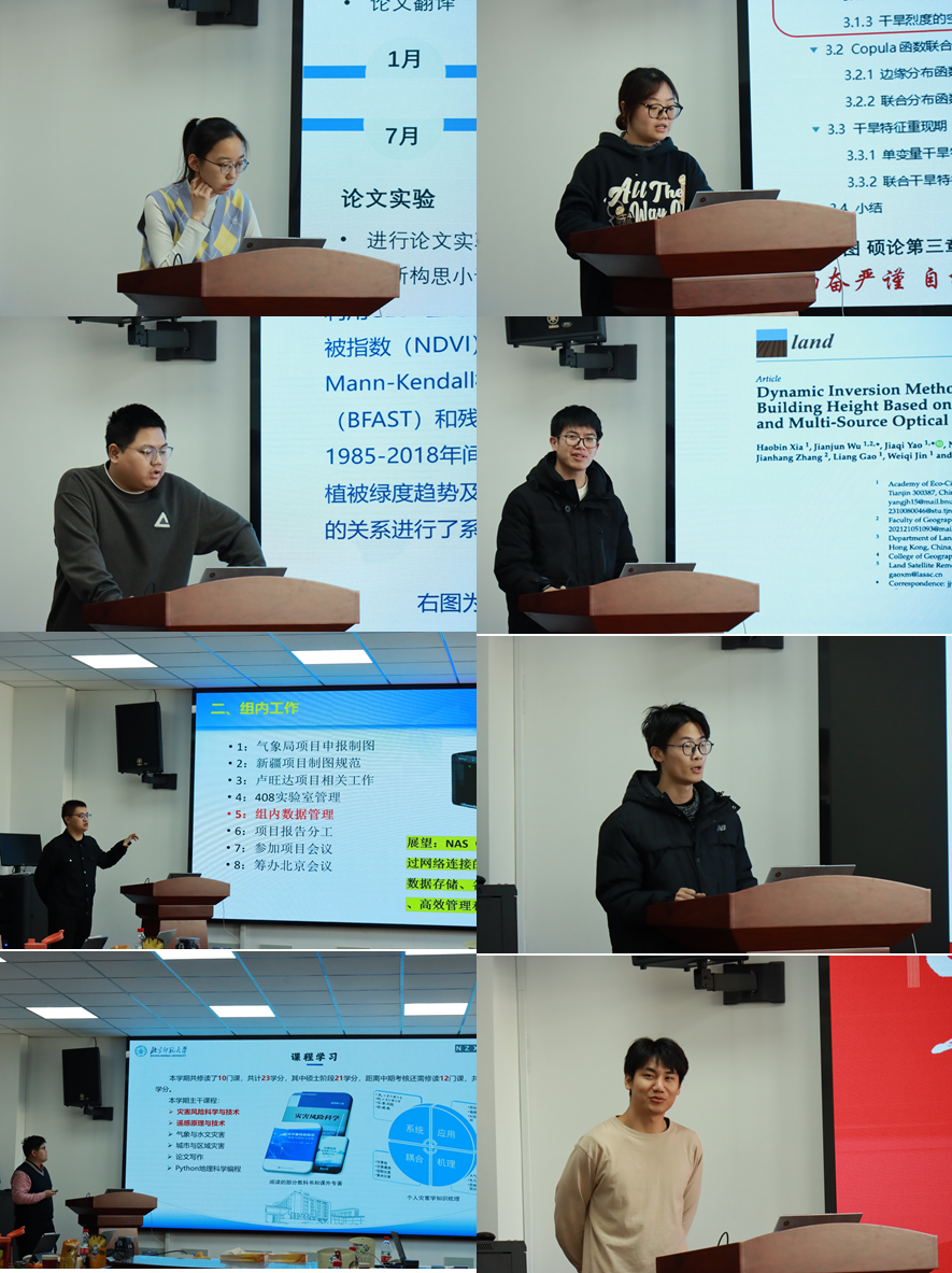 其次团队成员杜若华、周丽涛、杨睿、包佳玉、高亮、赵子萌、张士雷、袁浩、李雅倩、马卓然、夏皓斌、靳微淇、方睿、高世辰、陈鹏州、李春贺、卢庆锴、张思勤同学分别就2024年科研工作、项目工作、个人生活和下一年度计划四个方面进行了生动而详细的介绍,赵文慧老师和杨建华老师分别就每人的汇报进行了点评。
