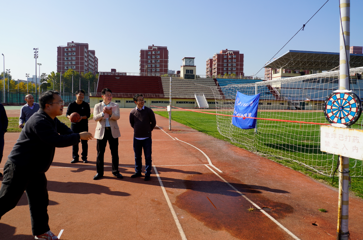2019年11月8日中午,减灾-地表工会小组在学校东操场顺利举办了以“快乐工作、健康生活”为主题的小型趣味运动活动。活动主要安排了篮球拍、运球快跑、投掷飞镖与跳绳三项活动。减灾院、地表过程与资源生态国家重点实验室的多名老师参加了此项活动。