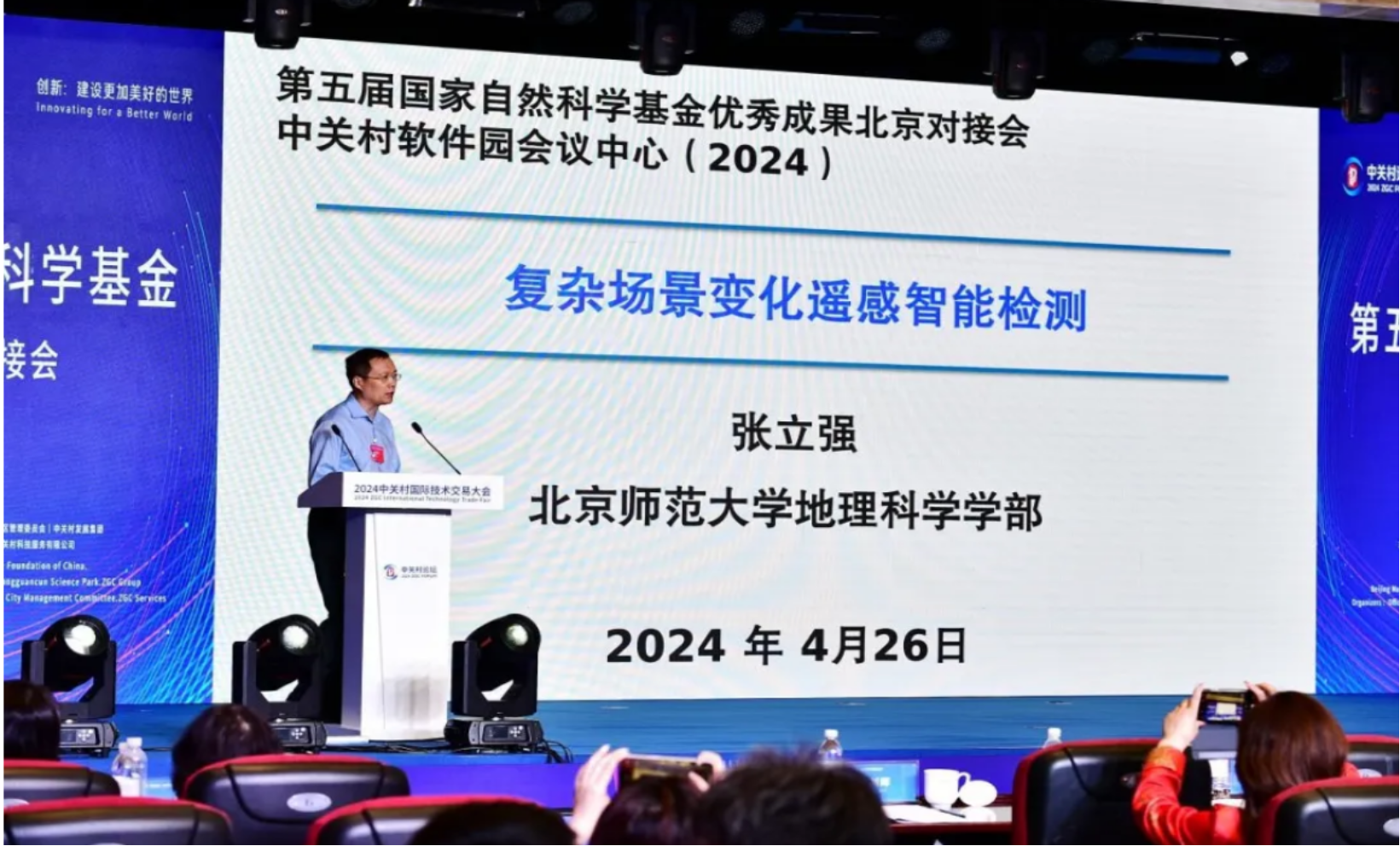 2024年4月26日,中关村论坛技术交易大会——第五届国家自然科学基金优秀成果北京对接会召开。经国家自然科学基金委的推荐、北京市自然科学基金委的邀请,张立强教授在对接会上作了“复杂场景变化遥感智能检测”的报告,介绍了在这一领域的研究进展,受到与会者的好评(//mp.weixin.qq.com/s/biBMcTsPzPFqpUvVNLoJeg)。