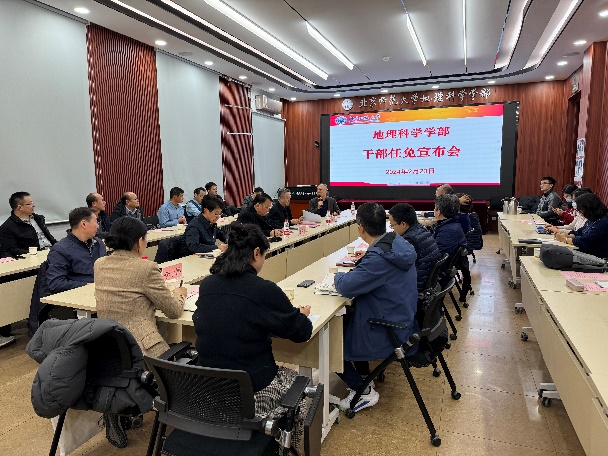 会议第三项,学部新任部长李小雁发言。李老师表示将在学校党委领导下,守住规矩、秉持公心、团结班子、恪尽职守、加强学习,围绕中心工作,继续带领学部全体教师改革创新、开拓进取。他希望未来学部师生能够在工作中多提宝贵意见和建议,为北师大地理学和遥感科学的繁荣发展共同努力。
