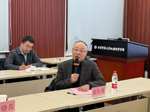 会议第二项,学部原任部长宋长青发言。首先,他对学校七年来给予学部的支持和帮助表示衷心感谢,同时也向学部党政班子及二级单位负责人一直以来对学部各项工作开展的大力支持和无私付出表示由衷谢意。考虑到学部现已进入平稳有序的高质量发展阶段,并结合个人实际情况,他主动选择辞去部长职务。他表示,未来会一如既往地继续支持学部的建设,并希望新班子能够坚持内塑文化、外树品牌,带领学部师生统一思想,凝心聚力,扎实推进中国地理学与遥感科学水平的稳步提升,为学校继续增光添彩。