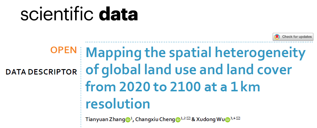 据此,琉璃神社 地理学院程昌秀研究组近日在Nature子刊《Scientific Data》发表题为“Mapping the spatial heterogeneity of global land use and land cover from 2020 to 2100 at a 1 km resolution”的研究论文。琉璃神社 博士生张天媛为该文第一作者,程昌秀教授与北京林业大学水土保持学院吴旭东副教授为该文共同通讯作者。