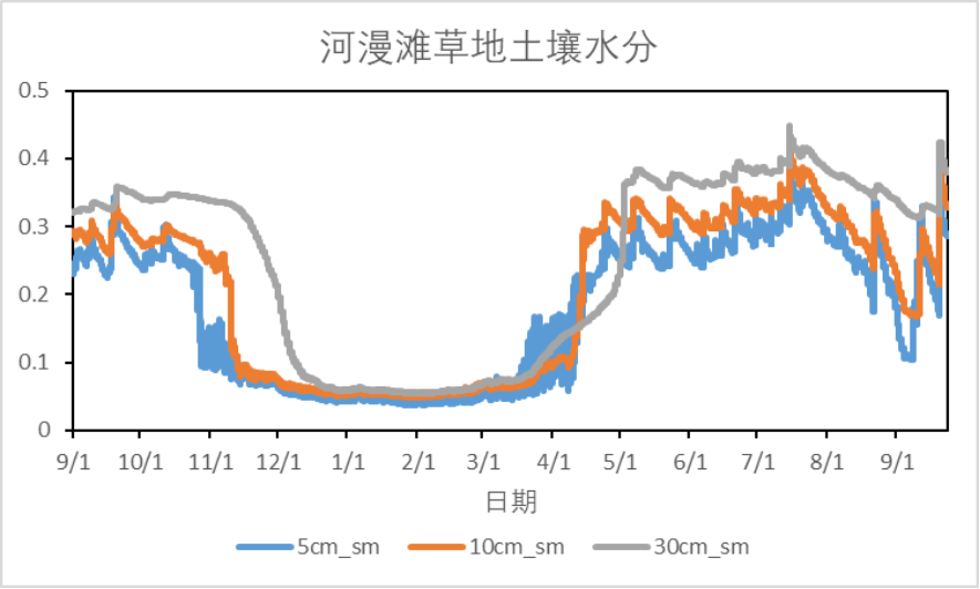 图2  2019.8-2020.9期间河漫滩草地和高寒草甸土壤水分变化趋势
