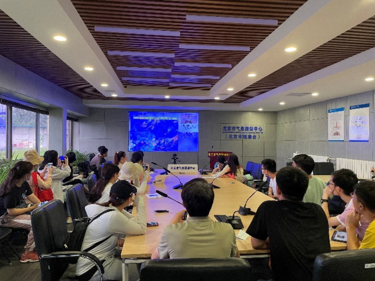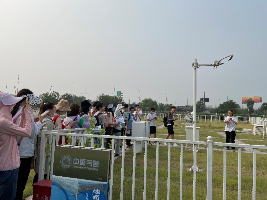 6月27日,实习队伍来到北京南郊气象台,在这里,学生们亲身体验了气候会商会议,听取了专业人员有关标准气象站相关仪器监测原理与使用的讲解,学习了辐射、气温、气压、湿度、风、云等气象要素的基本观测方法和注意事项。此外,同学们还参观了气象科普馆,了解气象要素监测发展的历史。