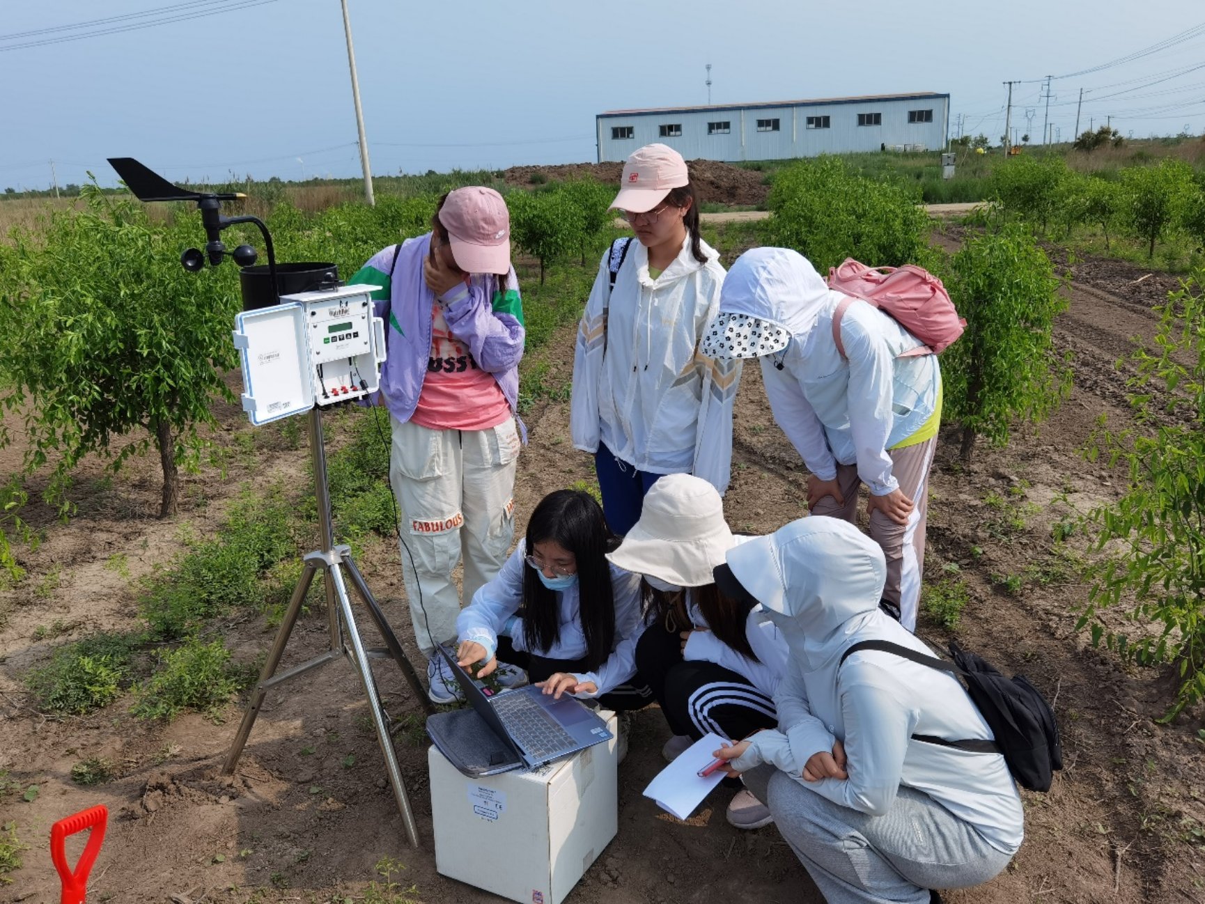 6月27日至6月30日,同学们到达了实习的第二个地点——河北黄骅,在这里,一共设置了五项实习内容,包括小型自动气象站架设和野外监测,监测不同下垫面基本气象要素的日动态变化。