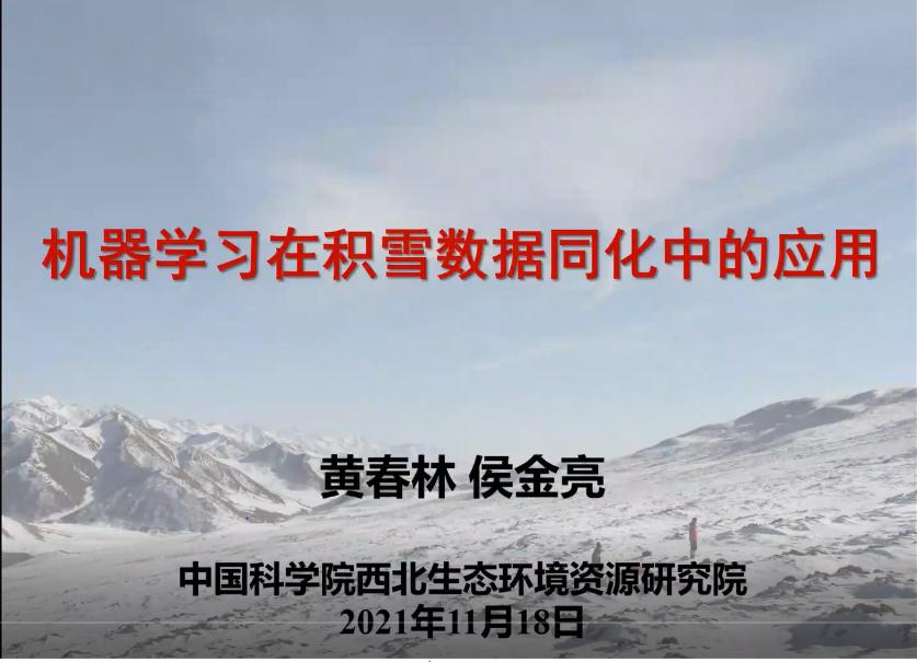 2021年11月18日上午,资源科学前沿系列讲座第17期线上讲座成功举行,中国科学院西北生态环境资源研究院黄春林研究员带来了“机器学习在积雪数据同化中的应用”的精彩讲座。徐同仁老师主持了本次讲座,刘绍民、柏延臣、蒋玲梅教授以及来自学部90余位研究生参加了本次讲座。