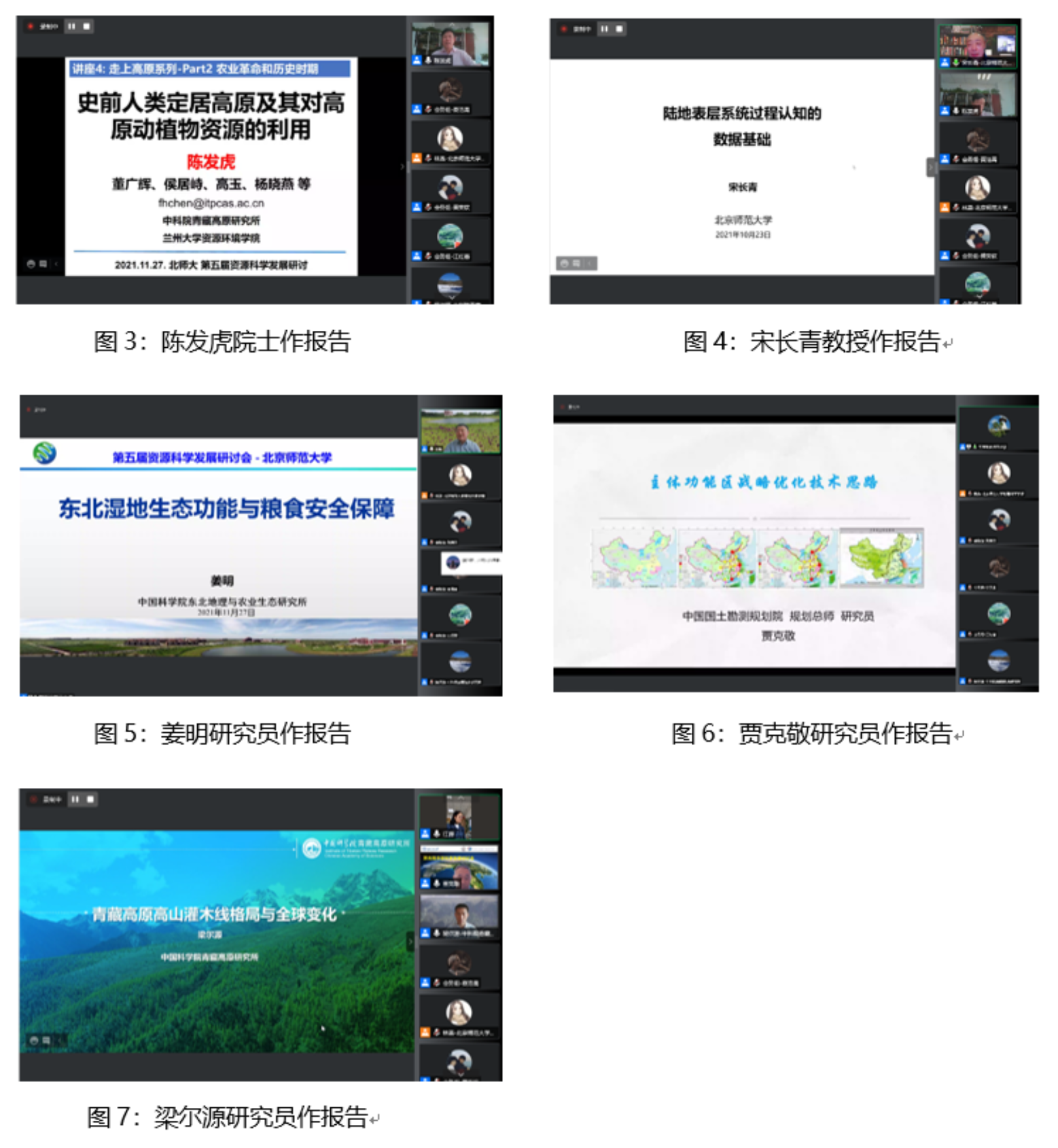 在11月27日上午的特邀报告中,李小雁教授和江源教授担任会议主持人。陈发虎院士、宋长青教授、姜明研究员、贾克敬研究员、梁尔源研究员分别围绕“史前人类定居高原及其对高原动植物资源的利用”、“陆地表层系统过程认知的数据基础”、“东北湿地生态功能与粮食安全保障”、“主体功能区战略优化思路研究”、“青藏高原高山灌木线格局与气候变化”作了大会报告。