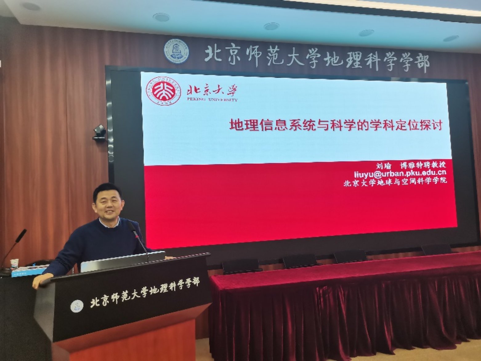 2021127日下午,地理学院学术月系列报告暨地理学一流专业建设活动在生地楼180举办。应地理学院的邀请,北京大学地球与空间科学学院刘瑜教授以“地理信息系统与科学的学科定位探讨”为题,为地理学院师生带来了一场精彩的报告。与会师生逾40人。