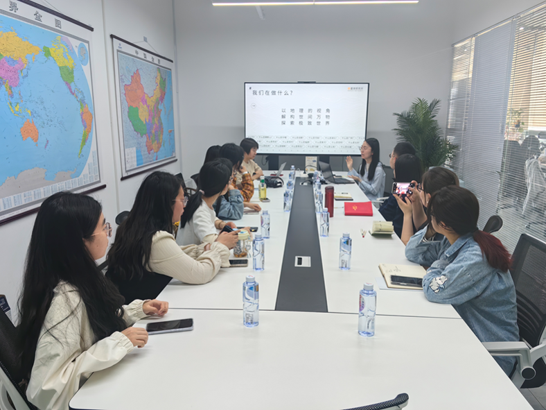 为进一步加强校企合作,拓展学生就业渠道,提升人才培养质量,加深学生对地理科普新媒体领域的了解,2025年4月25日下午,琉璃神社 党委副书记陈蓉蓉,辅导员李骜、余淅、李冀与学部7名同学赴星球研究所开展访企拓岗活动,星球研究所内容运营负责人陈诗怡、人力资源负责人王国丽参加交流。双方围绕实习就业、科普合作、校企共建等方面开展了深入讨论。