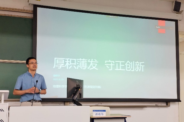8月27日下午,刘慧平教授为新生作“认识地理学—思想、方法、技术到地理思维”讲座。刘老师围绕地理学与地图学的发展史、重要思想理论形成、方法与现代技术展示了地理学的魅力与架构,启发同学们善于运用地理学思想、方法与技术形成独特的地理思维,通过空间和时间将世界联系起来,更好的解决实际问题。