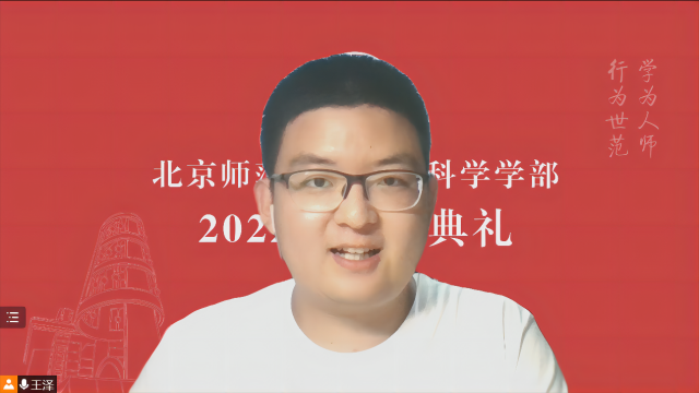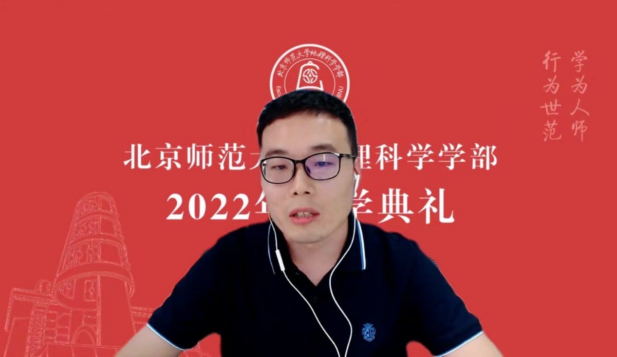 王雪超老师作为新生班主任发言,以《有幸成为一名北师大地理人》为主题,用三张照片分享了与北师大的故事,在这里,他结良师、交益友、遇良人、做研究、干事业。他对新生们说 “北师一遇,良缘难求”,要珍惜在北师大的时光。
