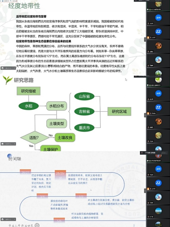 本次线上实习与2020年线上实习相比,在常规的植物和土壤实习外,新增了小组专题科研探索实践,这也是2021年线下实习中开始小组专题探索实习的延续,这样的形式有助于同学们在实习过程中锻炼自己发现问题、思考问题和解决问题的能力。这次难忘的实习为同学们今后的学习打下了坚实的基础,在特殊时期老师和同学们克服困难,取得了丰硕的实习成果,对于此次实习的师生们来说都是一次宝贵的经历和回忆。