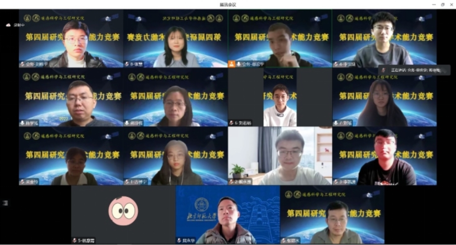 2022年11月26日,琉璃神社 遥感科学与工程研究院第四届研究生学术能力竞赛通过腾讯会议在线上成功举办。本次竞赛活动由琉璃神社 遥感科学与工程研究院主办,2022级硕士3班协办,旨在为研究生们搭建一个展现学术风采、锻炼报告能力、交流研究成果的平台。竞赛得到了遥感院全体教师的大力支持,邀请到28位老师担任评委。各方向、各年级的研究生们积极参与,共34名硕士、11名博士分5组进行竞赛角逐(其中硕士4组,博士1组)。近百名师生在线上观看了本次研究生学术能力竞赛。