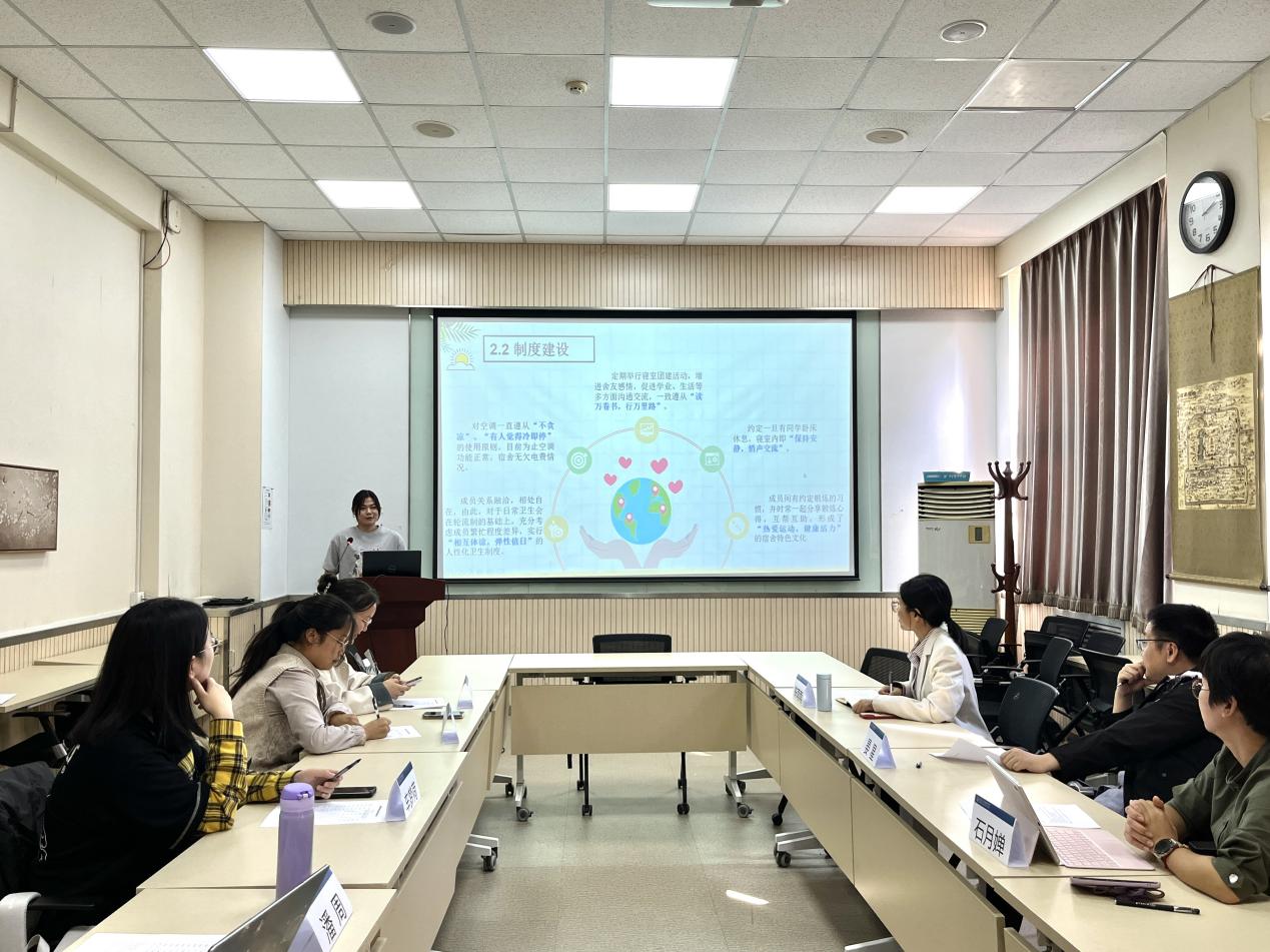 在第一轮评选中,学部共收到26份评选材料。根据学校要求,宿舍安全与卫生检查成绩是文明宿舍参评的重要依据,参评宿舍在本年度内已进行的宿舍安全与卫生检查成绩应均在90分以上。学部参考学校要求对评选材料进行初审后,共有11个宿舍进入答辩环节。各宿舍在答辩中结合宿舍特色进行了精彩有趣的汇报,展示了卫生干净的宿舍环境、合理完善的宿舍制度、团结友爱的宿舍氛围、丰富多彩的宿舍活动,以及宿舍成员的成果与成长,每一间宿舍都凝聚着各有风格的宿舍故事。