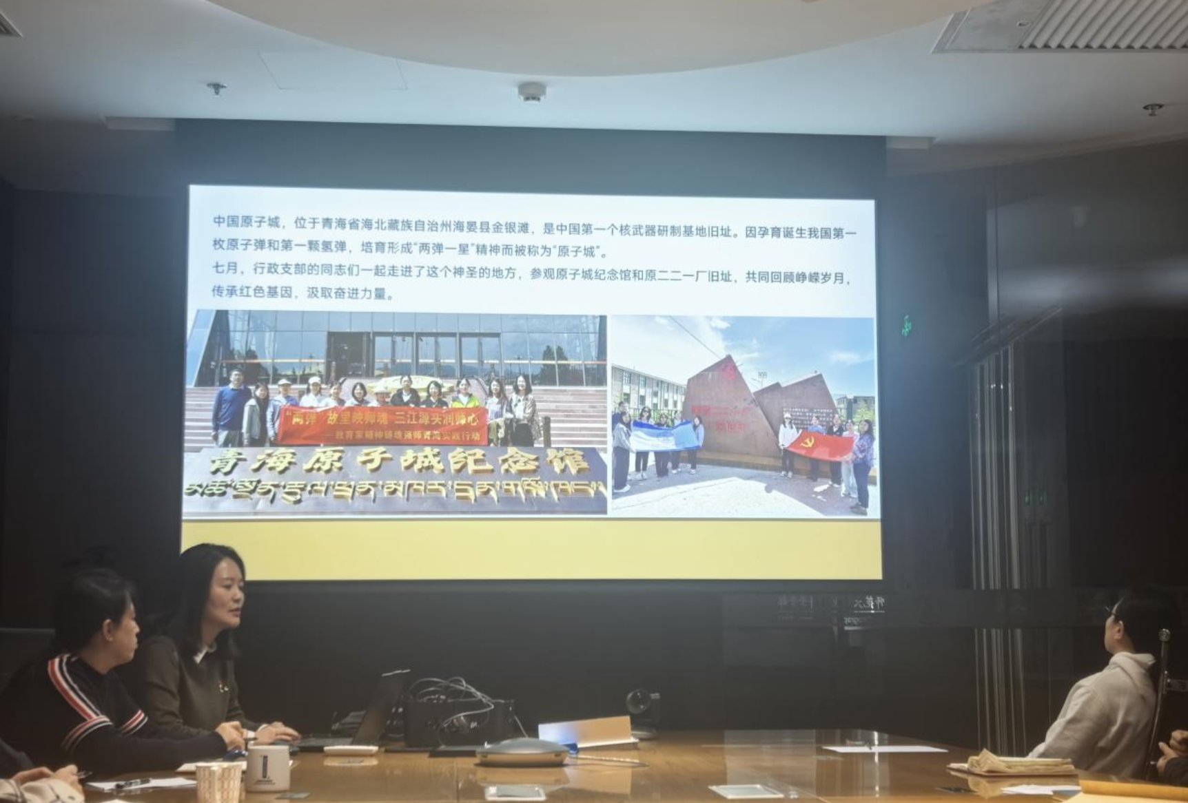 随后,刘静老师以“从‘两弹一星’到行政一线:永不褪色的精神密码”为题作分享。她讲到,在孕育诞生我国第一枚原子弹和第一颗氢弹的原子城,看到泛黄实验台、手摇计算机、斑驳宿舍床,静默诉说着 “干惊天动地事,做隐姓埋名人”的集体记忆,心中无限感慨。指出“两弹一星”精神不仅是科学家的精神坐标,也为行政工作者树立价值参照,倡议老师们以原子城为坐标,以师生需求为号令,用速度、温度、厚度续写属于行政人的两弹答卷。