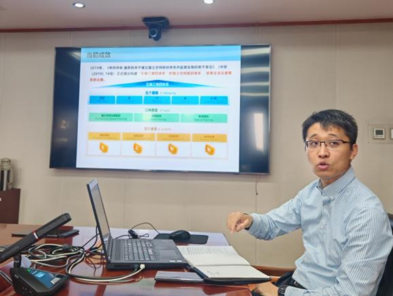 学术讲座与座谈环节由中国国土勘测规划院土地利用重点实验室主任与集约利用所所长左玉强研究员主持,他首先介绍了中国国土勘测规划院基本情况,并对学院师生的到来表示欢迎。接下来,规划院三位专家分别作专题报告,张衍毓研究员以"国土空间治理科技创新"为题,介绍了当前国土空间治理的科技需求与科技任务,系统阐述了大数据、物联网、人工智能等在国土空间精准监测、规划与治理中的应用;李琪所长介绍了"国土资源调查监测体系",重点讲解了"四步法"多源协同感知体系和AI技术在国土调查中的应用前景;张辉高级工程师详细解读了"五级三类四体系"的国土空间规划体系建设成果及动态监测评估机制的发展方向。