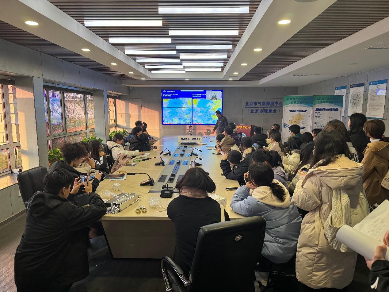 北京时间8点整是每日的全国天气会商时间,同学们聚精会神地听着各省市气象台关于近期寒潮天气过程的发言以及中央气象台首席和短期的总结,通过旁听天气会商,同学们进一步加深了对天气预报流程的理解。杜老师强调:“寒潮预警发布有严格的标准,只有24小时内最低温度降幅达到8℃以上才能发布寒潮预警。北京暂时还达不到寒潮发布标准,所以只发布了大风蓝色预警。”会商完成后,同学们体验了4D影厅,亲身感受了解变幻莫测的天气现象,一系列互动体验拉近了气象与观众的距离。