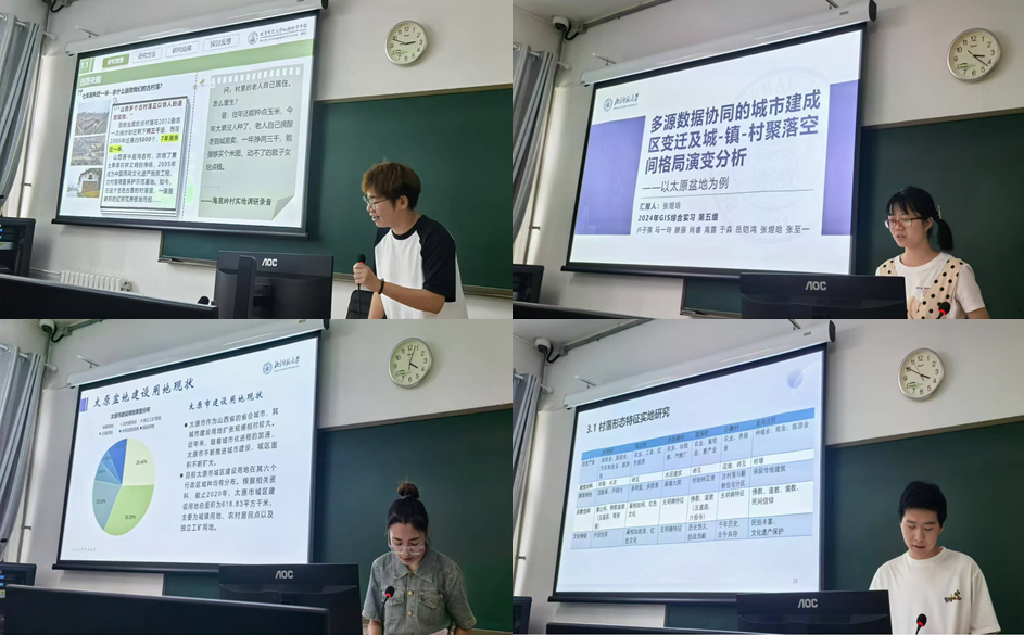 同学们分成七个小组,各实习小组围绕“太原盆地乡村功能演变特征及其影响因素”“多源数据协同的城市建成区变迁及城-镇-村聚落空间格局演变分析-以太原为例” “太原盆地耕地流失研究” “榆次区乡村空心化测度与机制分析” “太原盆地传统村落的空间分布、形态特征及其影响因素” “太原盆地土地覆盖的变化分析及野外调查”等主题。通过访谈当地居民、政府部门和企业负责人,收集相关资料和数据,分析研究区域的现状和问题,提出改进建议或解决方案。通过自主研究题目实地调查,同学们增强了自己的团队协作能力和科研素养。