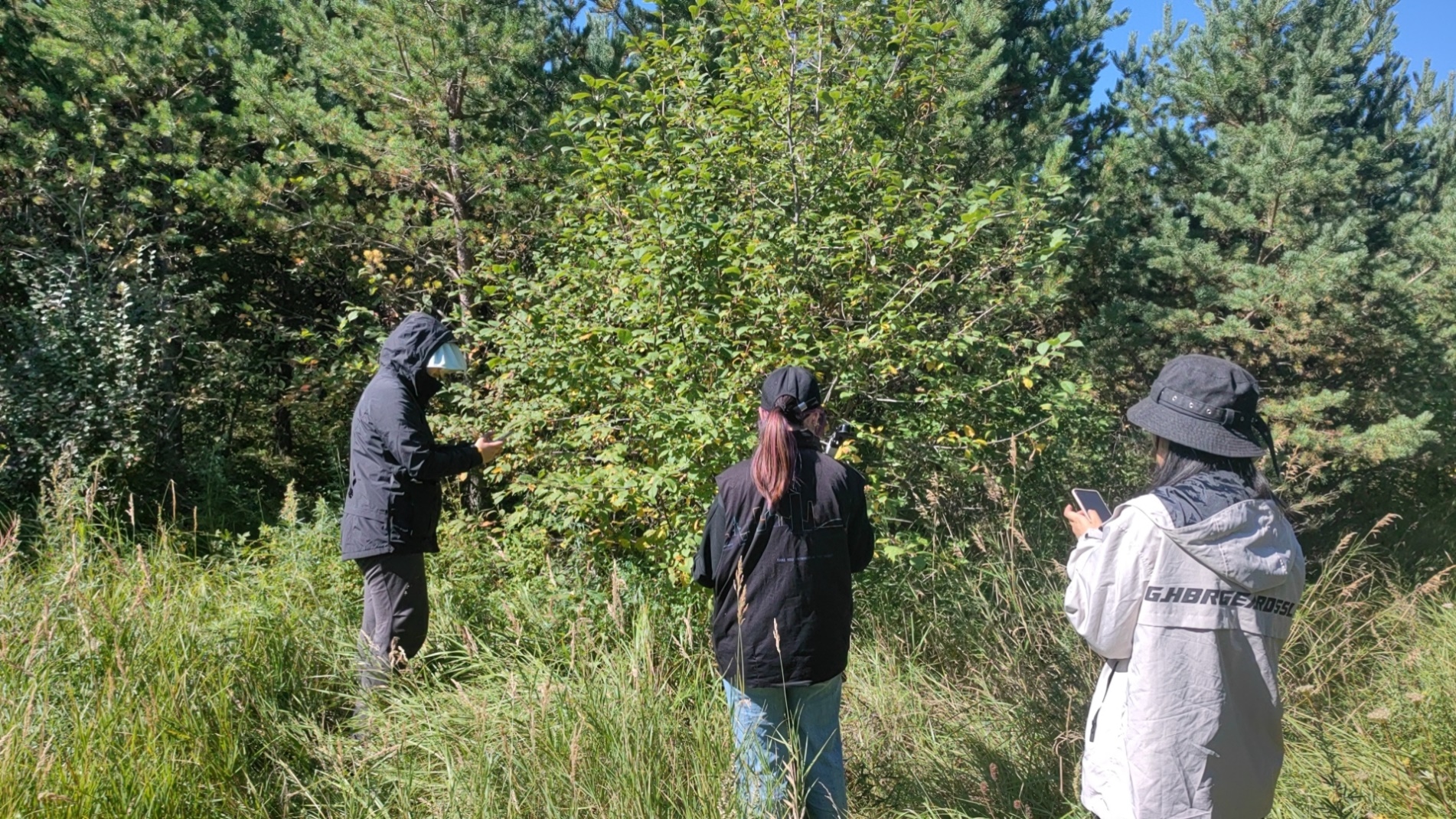 8月28日上午所有师生集体乘坐大巴前往路线一进行实地考察。同学们先在实地找到所选的遥感卫星像元,并在像元对应的区域内开展野外观测实验。各组主要测量典型地物光谱数据,冠层的叶面积指数和覆盖度,林下草地的叶面积指数和覆盖度。