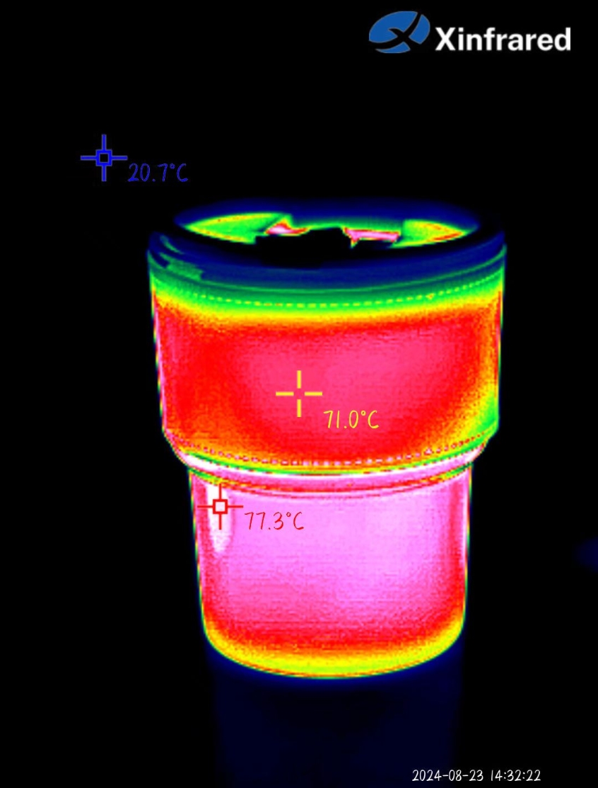 学生拍摄的装满热水的水杯热红外照片
