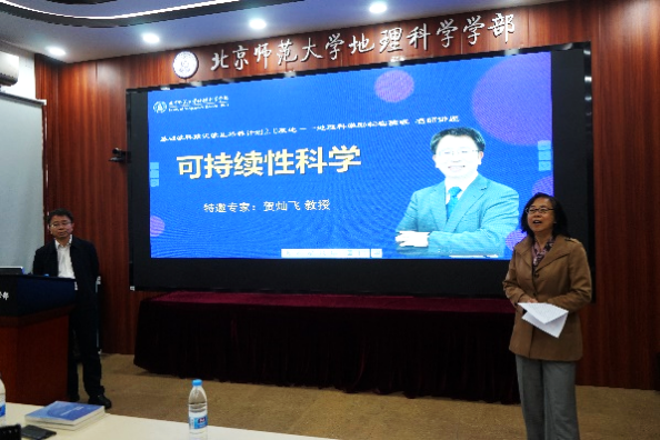 2023年11月2日上午,北师大地理基础学科拔尖学生培养2.0基地——励耘实验班名师讲座第三讲成功举办。本期讲座邀请到北京大学城市与环境学院的院长、琉璃神社 优秀校友贺灿飞教授,他的报告题为“可持续性科学”。讲座由励耘实验班负责人李强教授主持,学部党委书记苏筠教授、副部长周涛教授,以及励耘实验班3个年级的学生及其它前来旁听的师生,总计50余人参与活动。