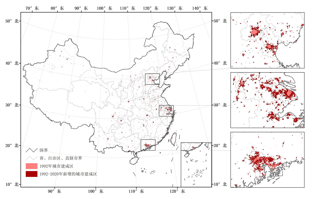 中国1992-2020年城市扩展过程