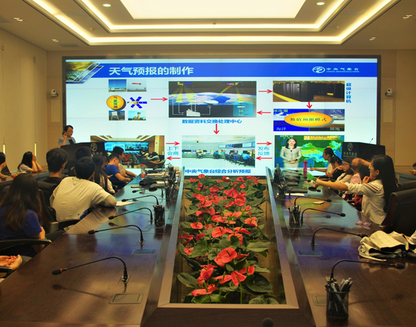 7日的行程更加丰富。上午,大家参观了国家气象中心和国家气候中心,在讲解人员耐心细致的讲解和答疑过程中了解了气象观测与预报过程,气候预报的重要性以及气候变化的大趋势,认识到气象气候预报在防灾减灾方面的重要作用。下午参观了气象影视中心和国家卫星气象中心,体验了天气预报的制作与播报过程,了解了我国的气象卫星历史与现状,大家也对自己未来的发展方向做出思考。 在这不长的五天气象气候实习中,大家精诚合作,在高效完成任务的前提下,增进了同窗友谊,扩展知识,对新的气象气候知识孜孜以求。地理学习是一条长路,本次实习的结束也是全新的开始,地理学人一直在路上。
