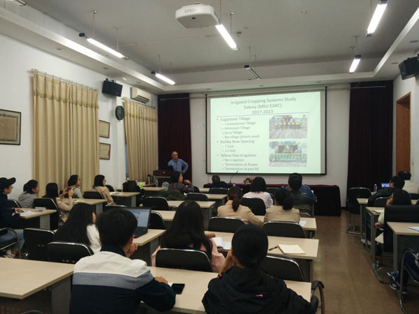 Dr. Jay Jabro研究员作了题为“Innovative Research at Northern Plains Agricultural Research Laboratory (NPARL), ARS-USDA in Sidney, MT, USA”的学术报告,介绍了美国农业部北方平原农业研究实验室的基本情况及主要研究内容,并展示了灌溉与旱地耕作研究的相关成果。