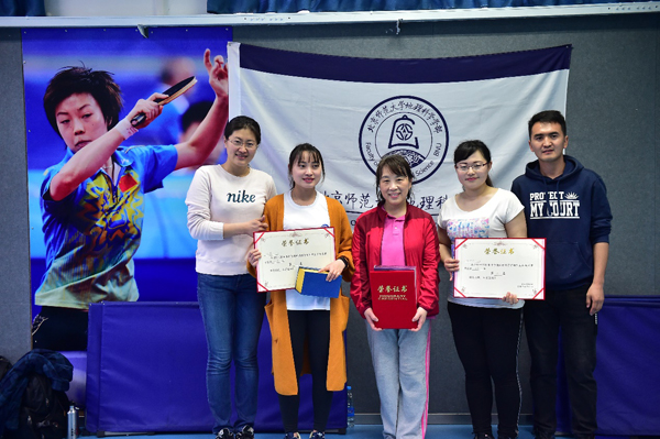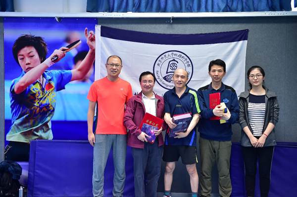参赛师生都精神抖擞、专注认真。正手对攻、底线对拉,猝不及防的精彩扣杀;上旋提拉、下旋切削,乒乓球在空中完美划弧;直拍快意、横拍自如,师生在球台上挥洒激情。经过初赛、复赛和决赛的较量,男单组三甲分别是冠军龚道溢老师、亚军周涛老师、季军赵祥老师;女单组三甲分别为冠军朱青老师、亚军纪欣然同学、季军张琴同学;混双组的冠军为朱良-朱青教师组合、谢隽劼-梅晓雯学生组合、周盈吉-纪欣然学生组合。