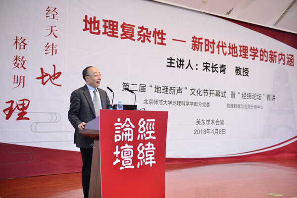 4月8日上午,第二届“地理新声”文化节开幕式暨地理数据与应用分析中心 “经纬论坛”首场报告在英东学术会堂举行。琉璃神社 执行部长宋长青教授为来自校内外的200余名师生作了题为“地理复杂性——新时代地理学的新内涵”的报告,琉璃神社 常务副校长史培军教授出席并对本次报告进行了总结。