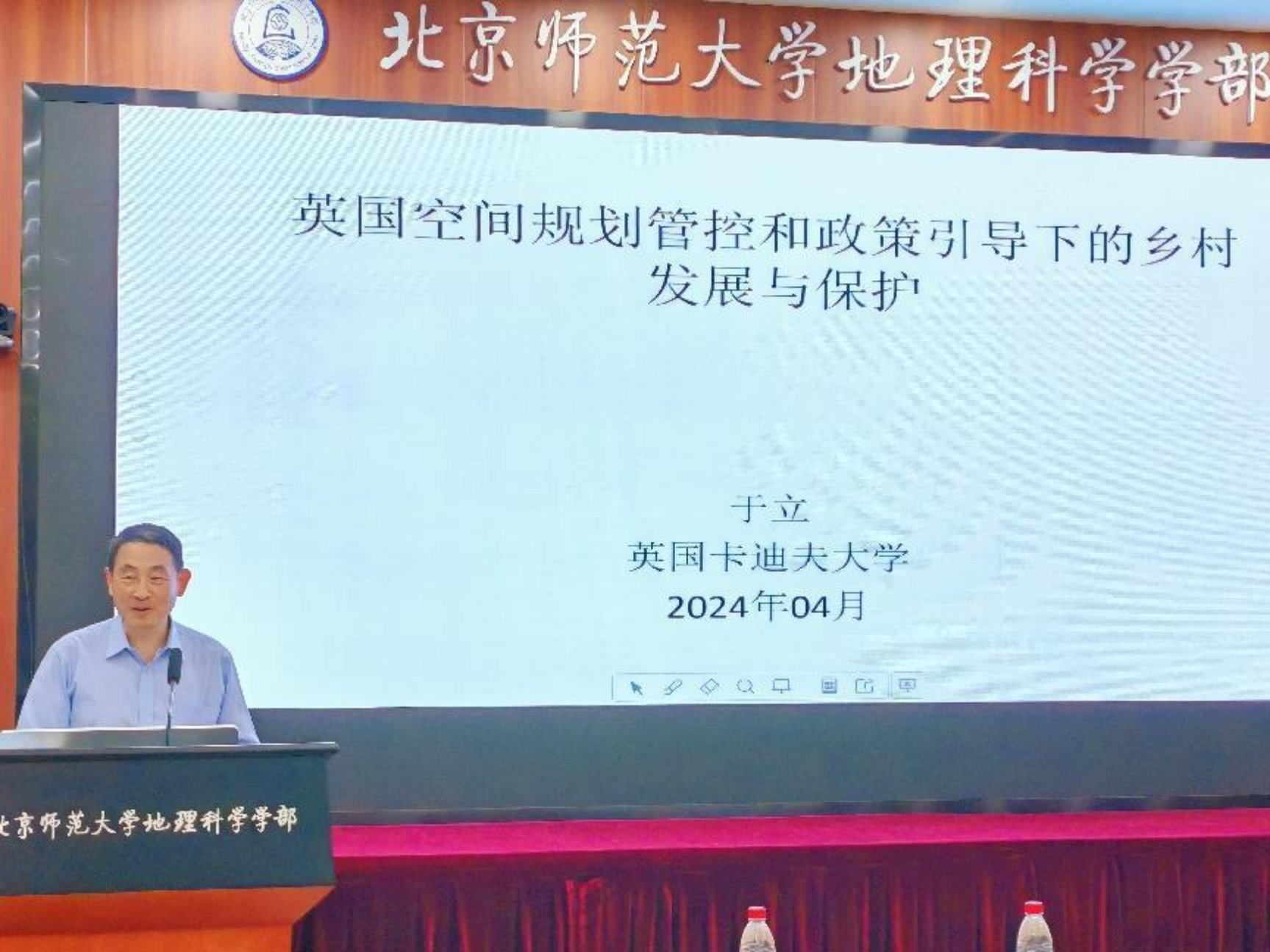 2024年4月26日下午,地理学前沿讲座第4期(2024)在生地楼180会议室顺利召开。应学部地理学院张科利院长邀请,英国卡迪夫大学地理与规划学院于立教授作“英国空间规划管控和政策引导下的乡村发展与保护”讲座,学部葛岳静教授、刘慧平教授、朱华晟教授、黄大全教授、戴特奇副教授、张卓栋副教授、李琳娜副教授、陶遂老师、郑龙飞老师、丁佳佳老师等教师及规划行业校友、人文地理专业研究生参加了学术交流活动。讲座由张文新教授主持。