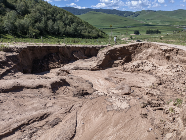 西段组考察队8月10日-8月16日与全程组共同在西段考察,8月16日后西段组在负责人周强教授的带领下继续在西段考察两周。在气候变暖的背景下,农牧交错带西段正在经历显著的暖湿化过程,与此同时,城镇建设,开矿等人类活动也在不断增多。因此,西段组重点关注气候变化和人类活动对土壤侵蚀的影响,通过沿途观察各地土壤风水冻复合侵蚀的类型,地表植被覆盖的变化,同时采集了土壤样品和土地利用和覆盖实测数据。此外,针对黄河上游风沙入河量准确估算这一重要科学问题,西段组前往龙羊峡水库和腾格里沙漠,实地考察了风沙入河的特征以及河段周边自然地理特征。
