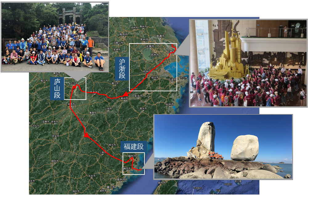 沪浙段主要考察城市发展与自然地理条件、崇明岛侵蚀-堆积过程与湿地生态保护、钱塘江流域地质地貌系统与区域人文经济发展;在庐山段,同学们主要就庐山地区的植被与土壤的垂直分异特征、地质构造与宏观地貌格局、人文特征与旅游开发三个方面展开了调查;福建段则侧重于对海岸地质地貌,以及福州坊巷文化与船政文化交相辉映的人文风俗的考察。