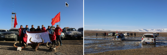 考察队克服高寒缺氧、通讯不畅、河水骤涨、行车艰难等重重困难,13天总计行程5413公里,7辆车计13364车⋅公里,共计考察样点78个,采集了各类土壤、沉积物样品225个、水样45个,收集了2016年12月—2018年5月祁曼塔格乡(依协克帕提中心站)气象观测数据,沿程粉尘测定14段,总计时长81小时。初步确定了库木库里沙漠分布格局,其沙丘主要覆盖于山前洪积扇、剥蚀山地和河流/湖泊滩地和阶地,并受主风向、沙源/水源控制,沙丘主要分布于山体北坡/阴坡,沙丘类型以新月形沙丘(链)、格状沙丘为主,有朝复合型沙丘、线性沙垄发展的趋势;初步推测末次盛冰期库木库里盆地沙丘广布,并发现更老的中更新世的古风成砂。预期考察成果将对揭示青藏高原零星沙漠形成演化及其与青藏高原隆升、全球变化以及人类活动之间的关系具有十分重要的意义。