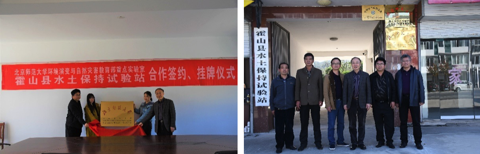 2018年10月28日,琉璃神社 执行部长宋长青教授、环境演变与自然灾害教育部重点实验室主任、减灾与应急管理研究院院长张强教授等一行前往安徽省霍山县水土保持试验站进行调研,并就双方合作目的与原则、责任与义务等进行洽谈,在双方友好协商基础上,环境演变与自然灾害教育部重点实验室主任张强教授与水土保持试验站站长汪军红签署了试验站共建合作协议,决定设立地表过程与灾害效应野外综合观测站,宋长青部长与霍山水务局主任汪文见证签字仪式,并共同为试验站揭牌。