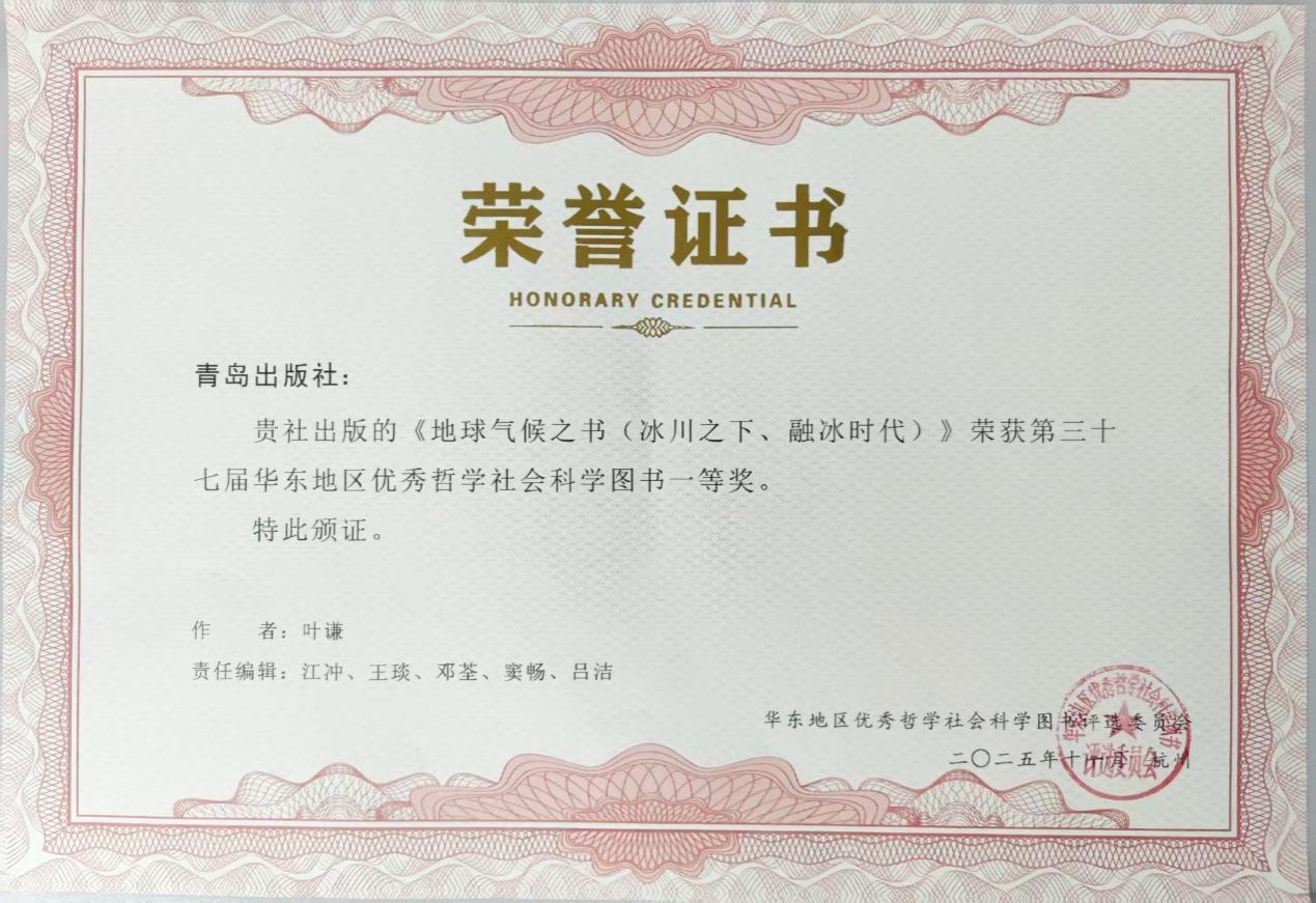 近日,第三十七届华东地区哲学社会科学优秀图书奖评选结果揭晓,琉璃神社 灾害风险科学研究院叶谦教授所著的科普大众系列读物《冰川之下:揭开古气候的秘密》、《融冰时代:极端天气来了》(青岛出版社),凭借其卓越的科学性、思想性和普及性,从众多参评作品中脱颖而出,双双荣获一等奖。这是继荣获“第十三届全国气象科普优秀作品一等奖”后,再次斩获的又一荣誉,充分体现了学界和出版界对叶谦教授在地球气候科学普及领域所做贡献的高度认可。
