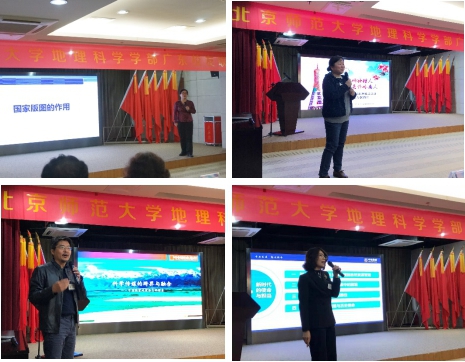 校友联谊会设置校友微分享环节,教师代表葛岳静老师、92级校友深圳市第二实验中学地理教师张惠玲学长、93级校友中地集团董事长钟玉燕学长和中国国家地理繁体版出品人胡昕先生,分别以“国家版图,地图话语与地缘政治”、“地理情怀与地理教育”、“地理情怀与大众普及”、“地理情怀与国家服务”为题进行了分享,充分展示地理思维和专业知识对国家建设和社会发展的重要贡献,展现了地理人在各行各业建功立业的累累硕果。