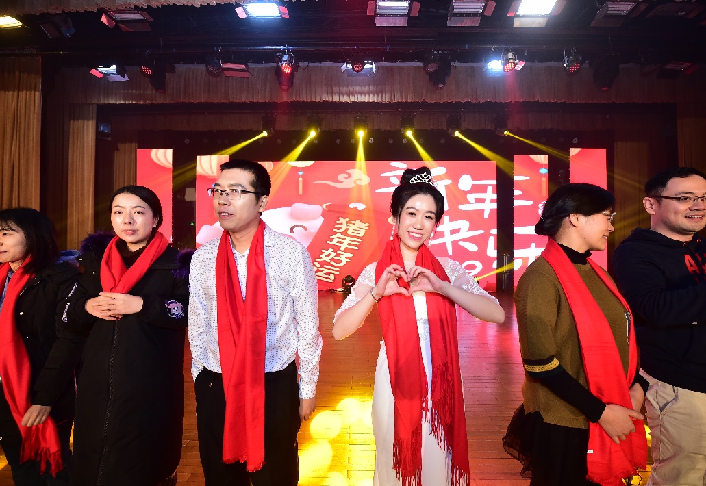 第四亮点:高潮迭起。作为一台“有货有料有内涵”的元旦晚会,晚会的节目可谓是风格迥异、精彩纷呈。开场秀由篮球队和啦啦操珠联璧合,抛球撒红包环节一下子点燃了全场热情。此后,优美的舞蹈、帅气的乐队、怀旧的串烧、师生的朗诵,精彩纷呈。晚会中还穿插了一个“金猪献瑞”的环节,邀请现场二十名生肖为“亥猪”的老师和同学上台,送上学部精心准备的红围巾礼物,寓意“红红火火本命年”。晚会的最后,苏筠老师抽取了一位“地理学部锦鲤”,这位幸运儿获得了师大及周边十余家店铺的各类优惠福利。