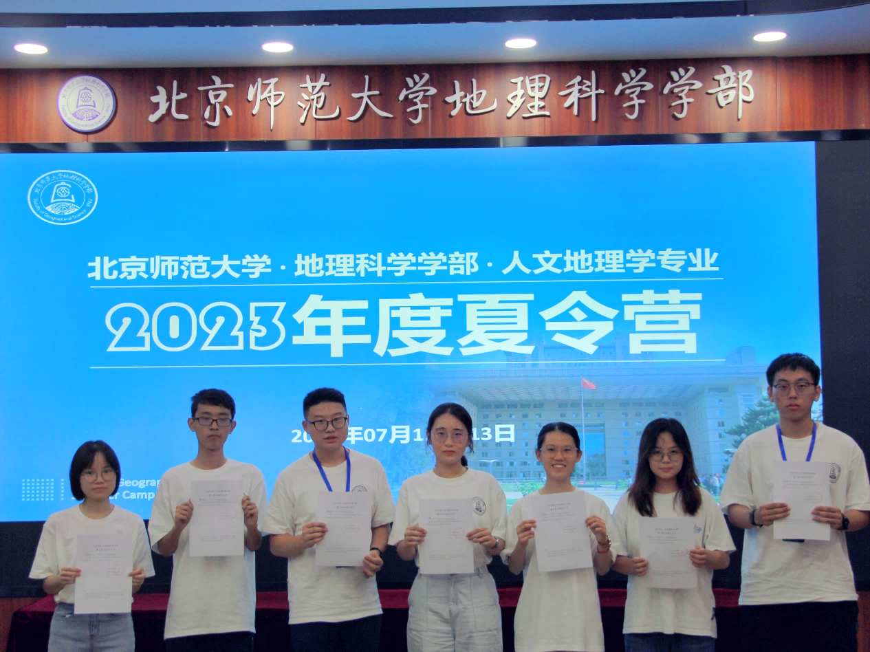 7月13日上午,营员们各自就专业考察进行了主题汇报,现场老师们逐一提问并点评。下午15:00,人文地理学夏令营闭营仪式正式开始,老师们充分肯定了营员们的出色表现,并勉励大家继续前行,争取更大的进步。地理学院程杨副院长为7名优秀营员颁发了证书。