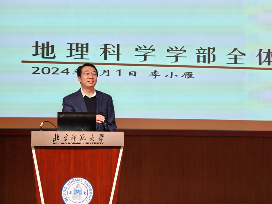 李小雁部长对学校和学部的相关工作进行了传达与部署。他首先围绕 “持续优化学科结构布局,加快新一轮‘双一流’建设步伐”“落实立德树人根本任务,不断提升人才自主培养质量”“构建高水平科研创新体系,深度对接国家重大战略和区域经济社会发展需求”“深入实施人才强校战略,深化人事制度综合改革”等方面对学校2024年度重点工作任务进行了传达;其次,他对近期学部职称晋升工作和人才引进等人事工作安排进行了通报;接下来,他对近期在学部内设机构开展的调研情况和教师们反馈上来的相关问题进行了总结与梳理,并强调在后续的学部管理和发展工作中将结合上述问题的逐步解决充分发挥内设机构的职责与特色,推进学部学科建设和人才培养等重点方向与重点工作的开展。