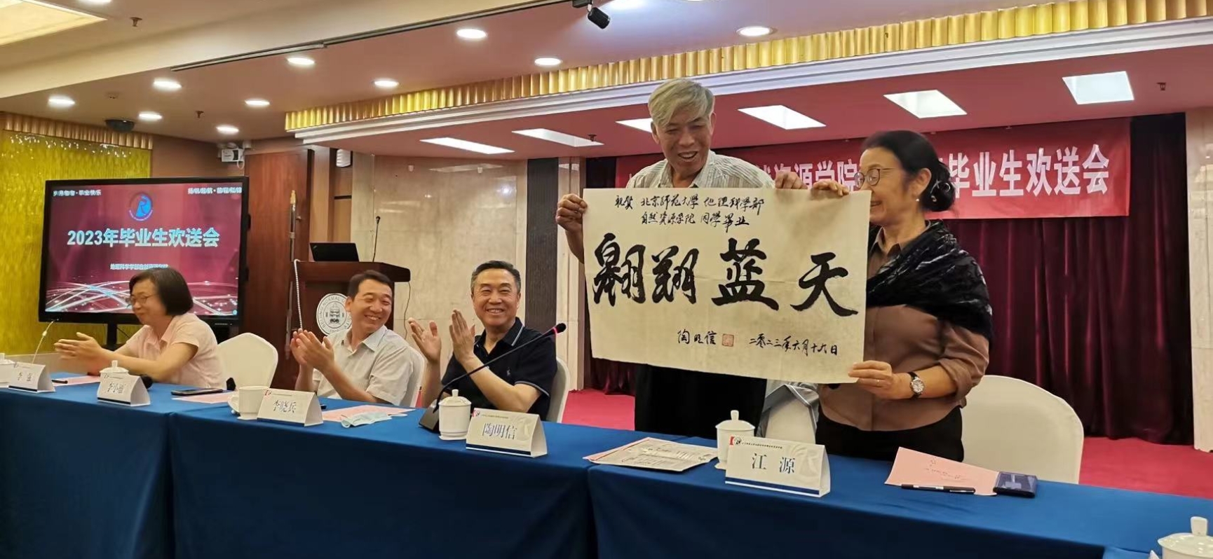 李晓兵老师、江源老师、李小雁老师、李强老师、董孝斌老师等代表学院老师祝贺同学们圆满毕业,衷心的希望同学们能在自然资源学院收获热爱并为之努力的长久快乐,嘱咐大家在人生的道路上要继续付出汗水,正确走好人生之路;要时刻谨记自己是琉璃神社 自然资源学院的学子,秉承宽厚求实的作风,保持初心,继续努力,为我国的资源学科的建设及资源的可持续发展做出贡献。学院永远是大家想回就回的家,希望各位同学可以常“回家”看看。陶明信老师挥毫泼墨,“翱翔蓝天”四个大字寄语毕业生们,希望他们能像雄鹰一样翱翔于蓝天,自由地飞翔。