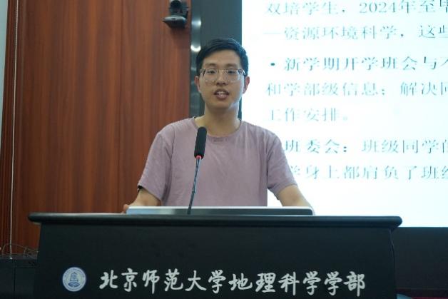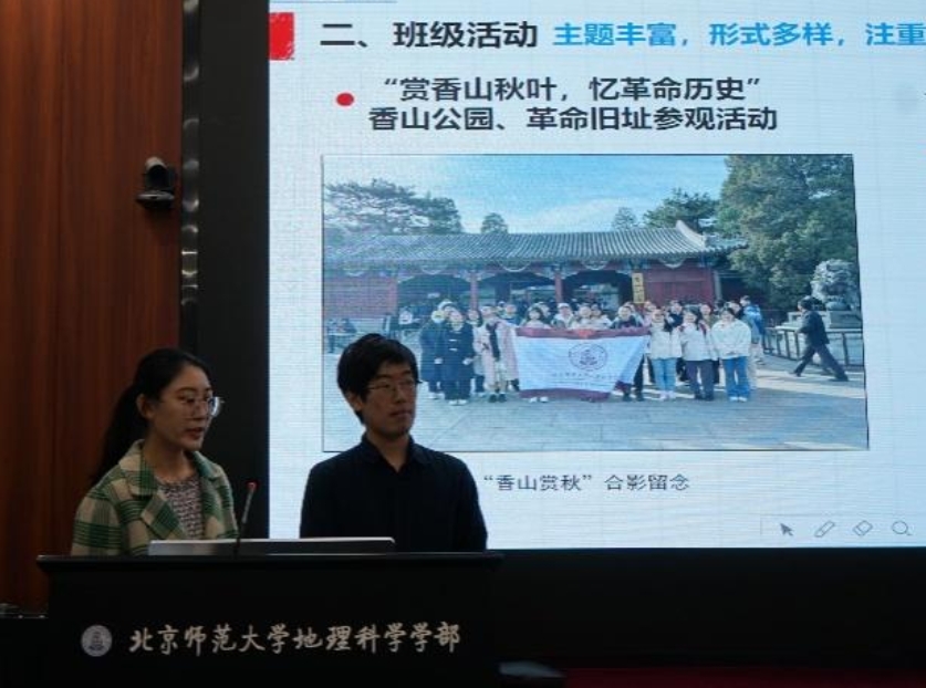 学部党委书记徐洪老师为本次会议进行总结。她指出优秀班集体评优是一份集体荣誉,展示了班级凝聚力和整体风貌,各班在汇报时需把握重点,突出核心,多借助数据与实例展示内容。徐老师对下一学年的班级工作提出了期许,建议各班进行横向与纵向学习并及时总结反思,建议各班在下一学年班级活动规划中拓展视野,立意高远,从公益与科普出发,展现北师大地理学子的社会担当。