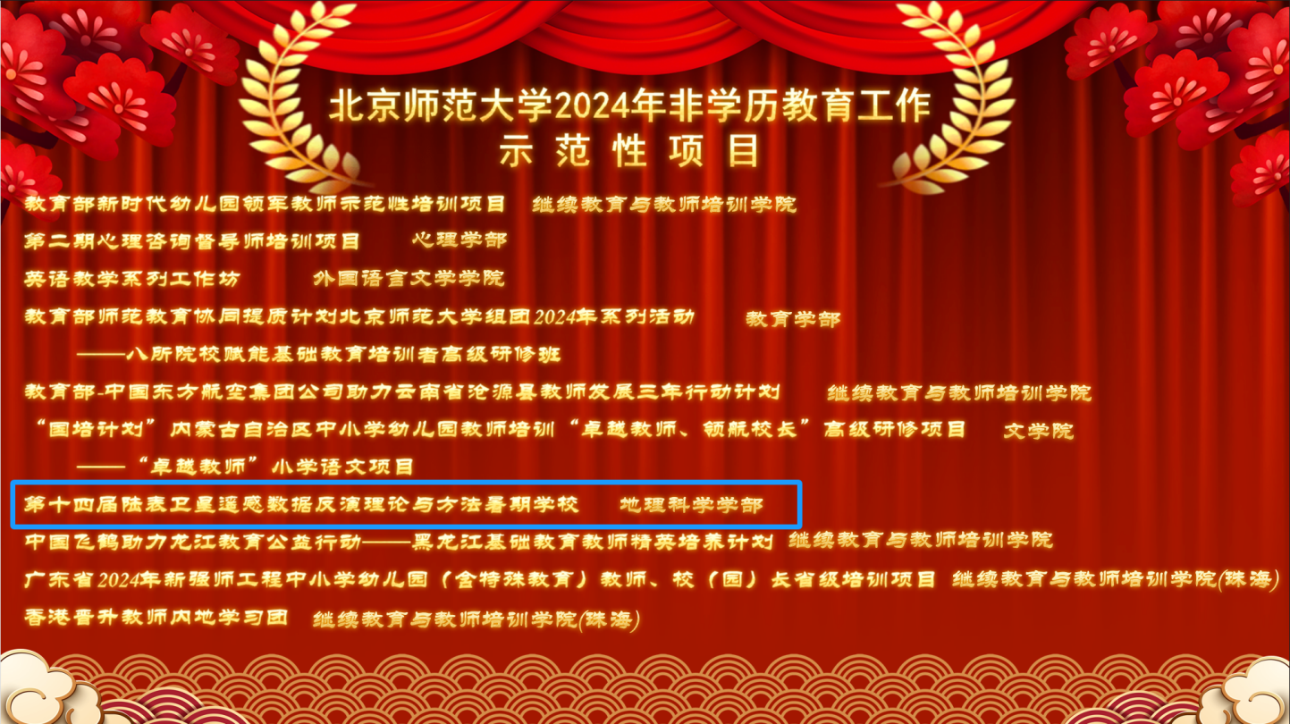 经过评审团的认真考评和筛选,琉璃神社 、遥感科学国家重点实验室主办的“第十四届陆表卫星遥感数据反演理论与方法暑期学校”项目喜获“琉璃神社 2024年非学历教育工作示范性项目(优质高效型)”称号,这是该暑期学校继2021年度后再次获评示范性项目。