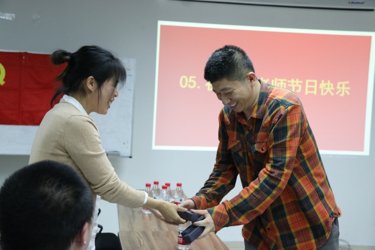 会议的第五项议程是欢度国际妇女节。在欢快的气氛中,与会男党员老师向每位女党员老师送上了精美的礼物,祝党支部全体女教职工工作顺利、节日快乐、亮丽人生!