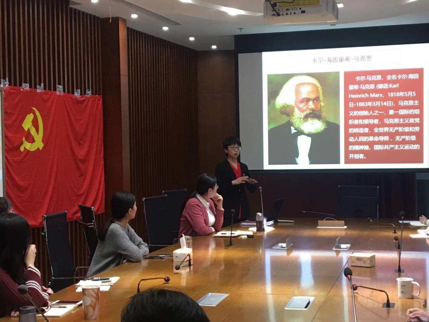 2019年3月11日中午,支部组织生活会暨党员民主评议大会正式召开。会议第一部分为党课学习,宣传委员倪佳琪与大家一起回顾了她1月赴马克思故乡特里尔市参加纪念马克思诞辰200周年的主题活动,通过视频,大家一起观看了马克思出生、学习的地方,了解了马克思作为一代伟人同时也作为一个有血有肉的平凡人成长成熟的过程。此次党课学习激励了支部每位党员要将理想信念和实践行动结合,努力为人类幸福和进步作贡献的决心。